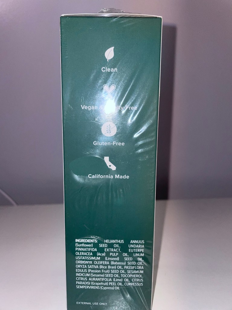 And the body oil is made from Undaria algea that’s been soaked in barrels of oil for six months. I did a little digging around on Osea Malibu’s website, as I was curious about the product. It also contains sunflower seed oil, acai pulp oil, linseed oil, babassu seed oil, rice bran oil, passion fruit oil ( which I can smell but maybe that’s my imagination, sesame seed oil, lime oil, ( subtle) grapefruit peel, and cypress. All these ingredients are meant to smooth and firm skin, as well as help reduce stretch marks. This all according to thier website and Influenster info.