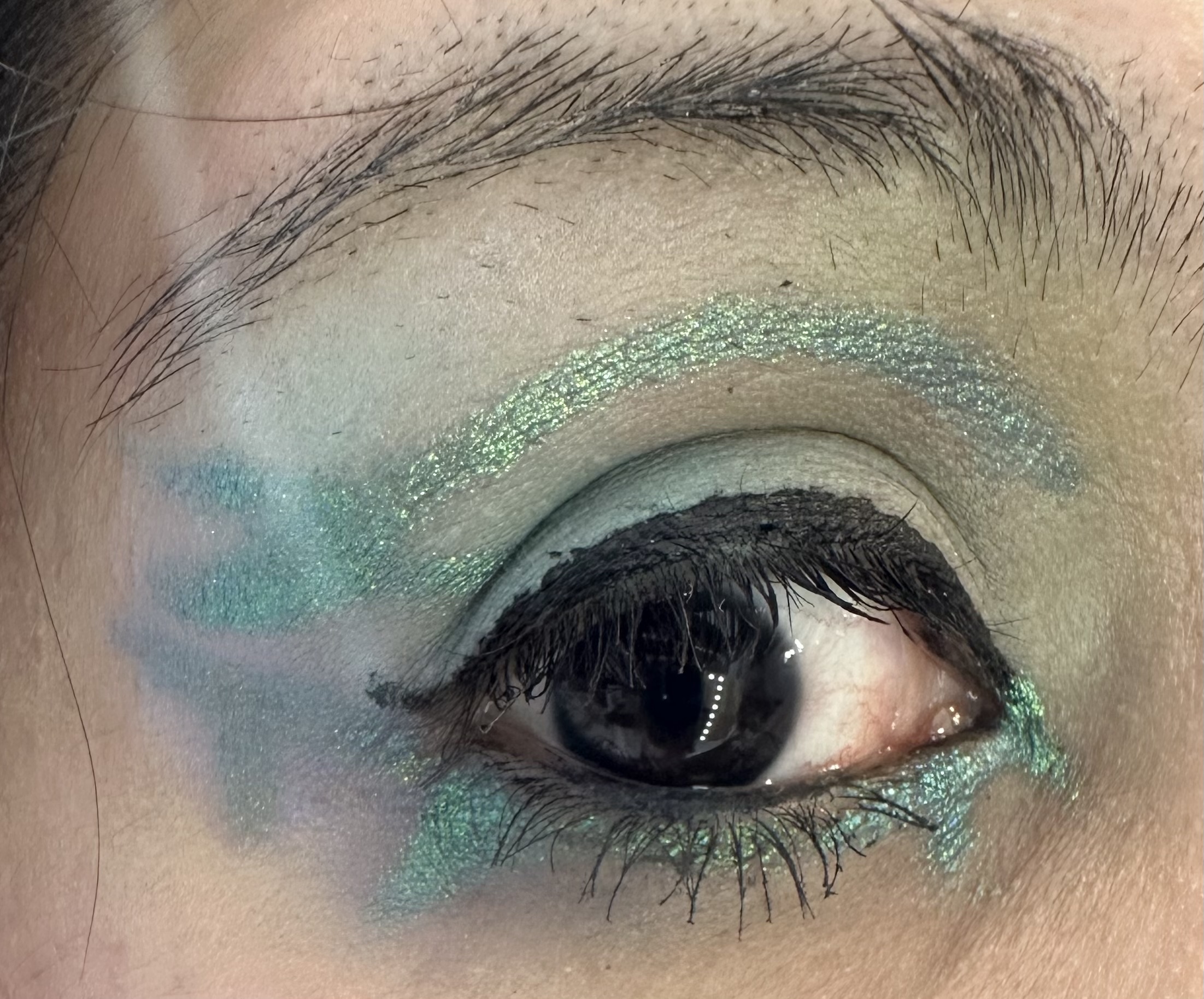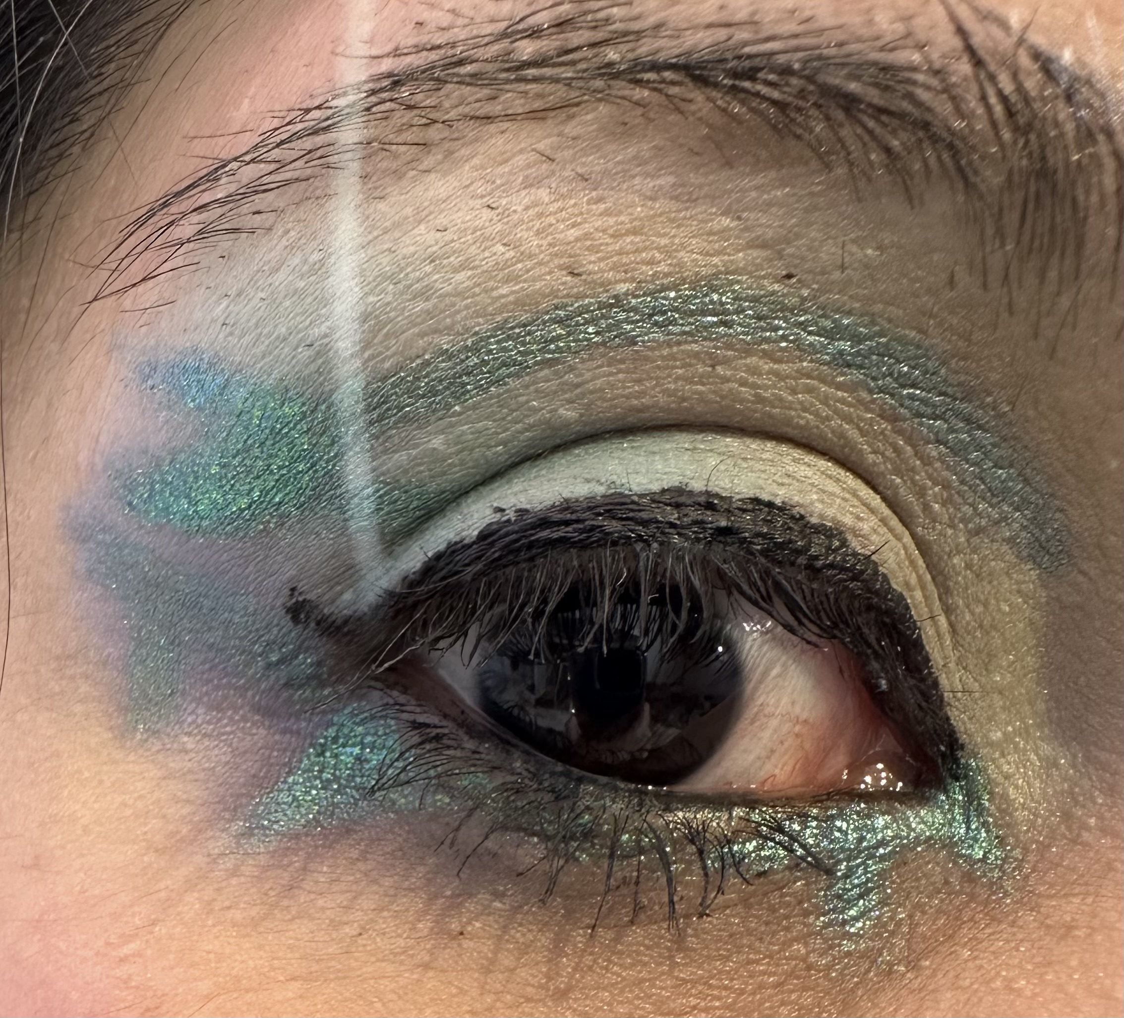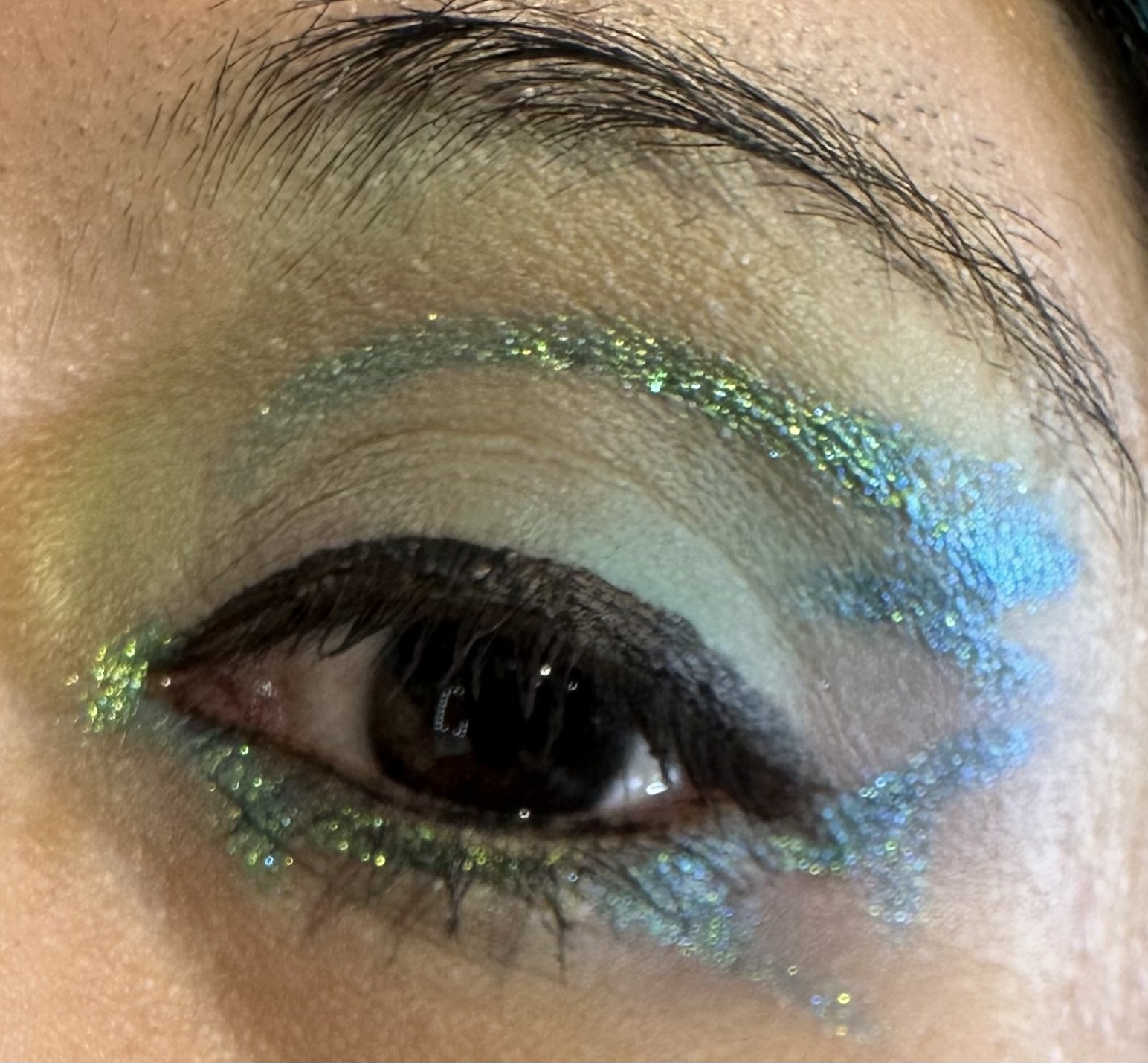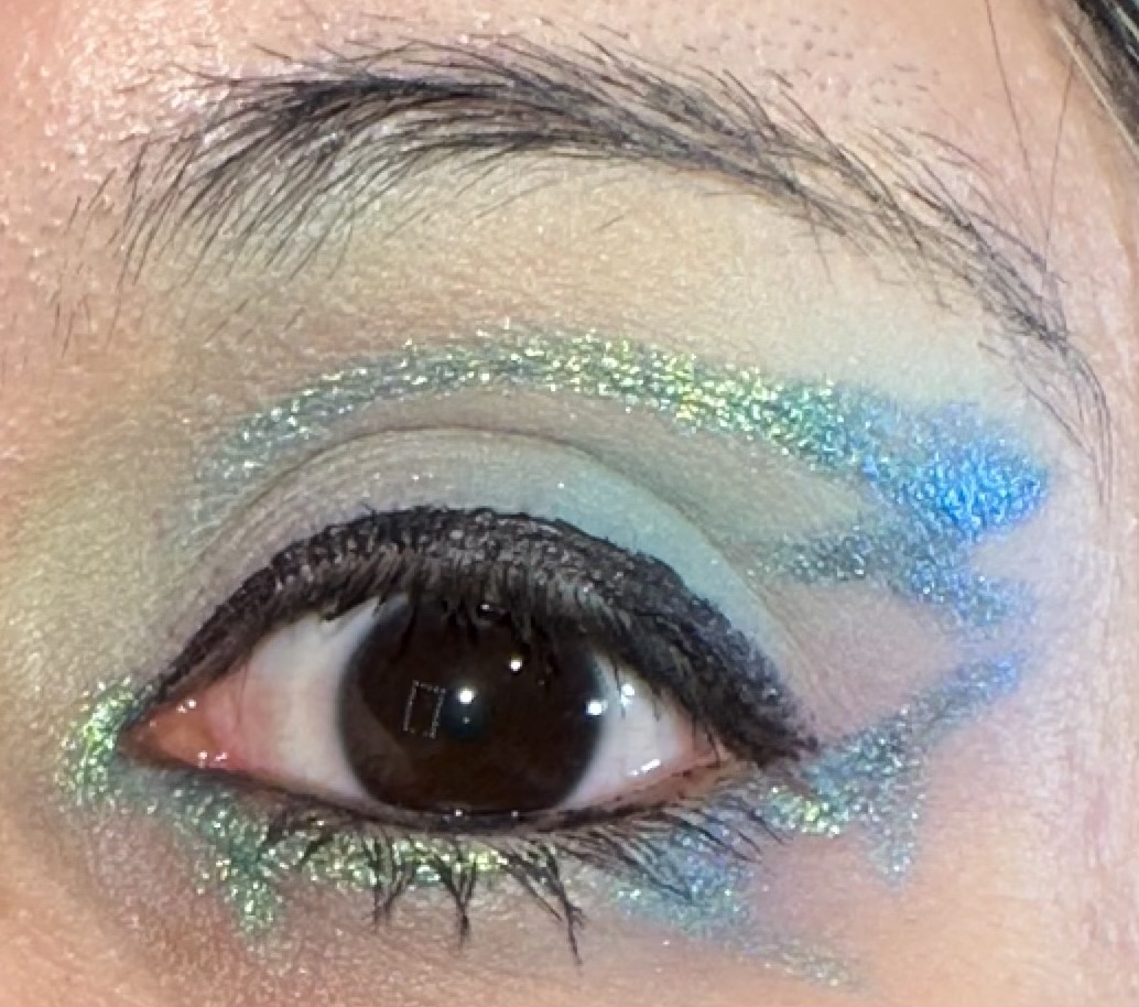 I feel like the liner was a bit harder to get really sharp lines but I tried to make complex graphic design. It didn’t work out exactly right , but I still liked the look and wanted to share how it reflects , here you can see some blue and a bit of the nice lime green.
