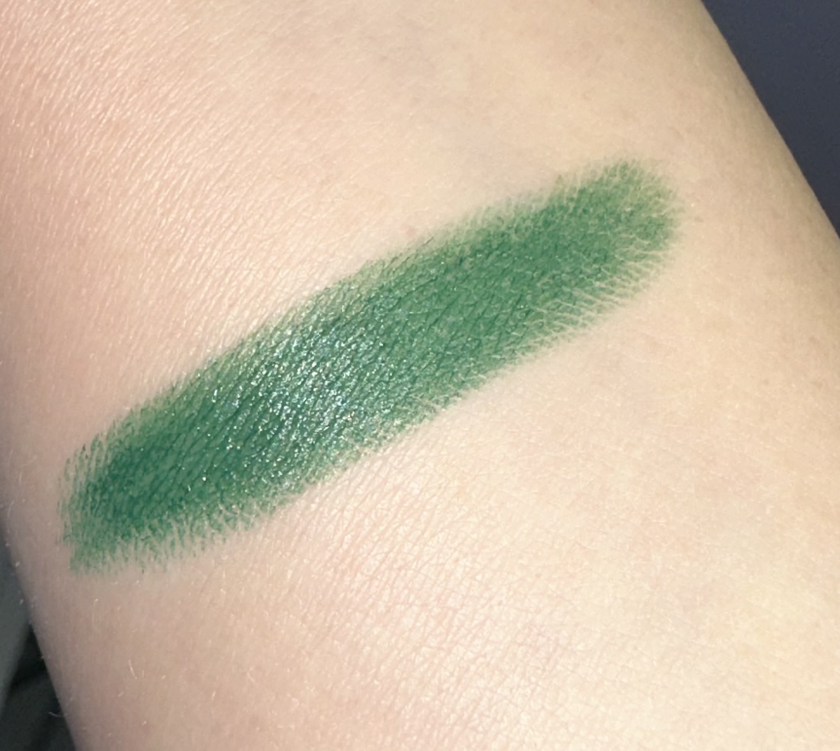 The swatch is really smooth, and it was easy to swipe on my arm. It’s like a matte that’s slightly moisturizing. Honestly this formula is really good , and I’m surprised more people weren’t talking about it. Like if their other colors were as comfortable to wear as this green is ( which green is kind of a harder to formulate color ) that’s pretty impressive. Also this lipstick has a nice vanilla minty scent to it , it’s very non offensive and fades as you wear it.