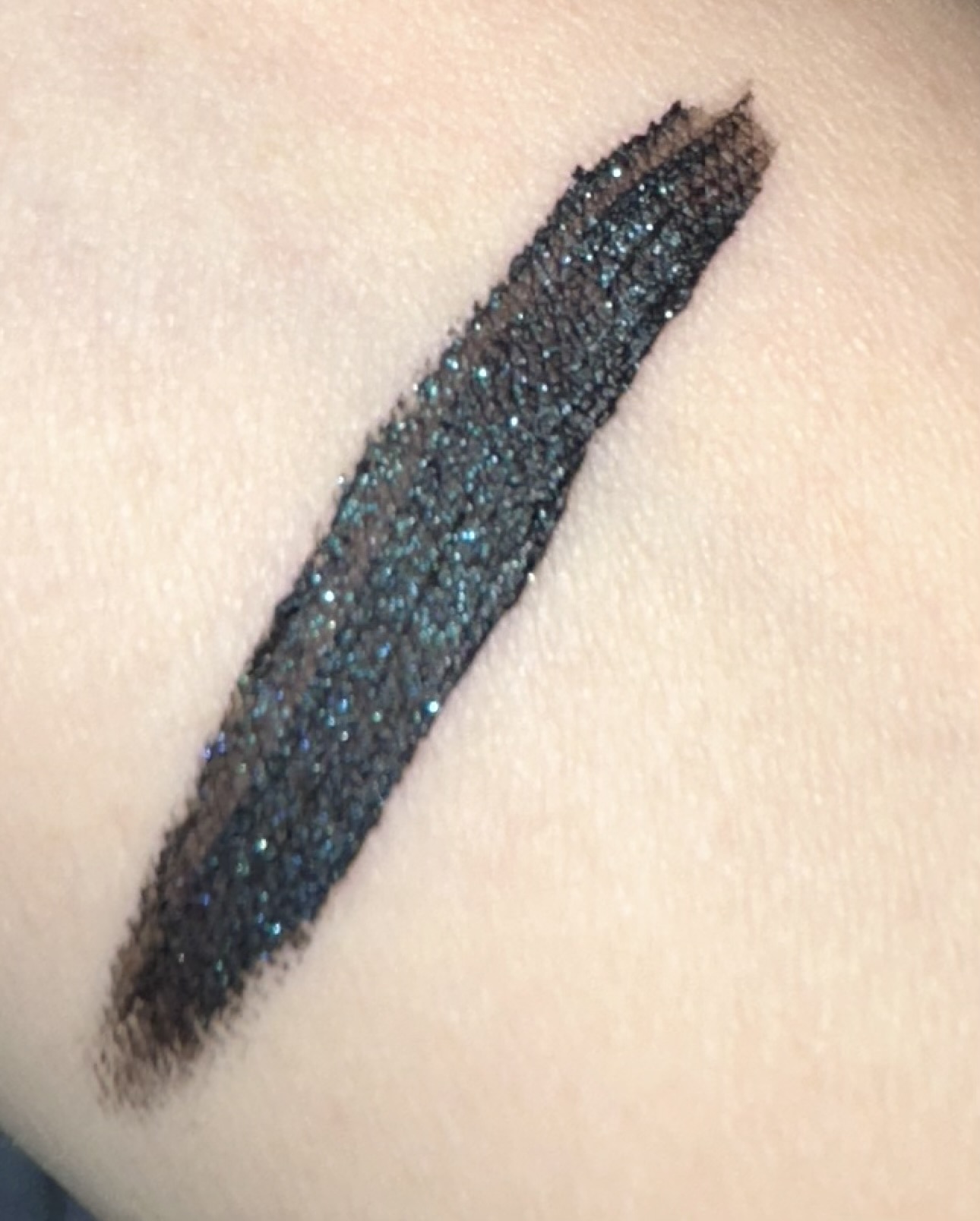 I tried some different angles to show off the shimmer , like you can see the sparkle , but sadly not really the blue . I do think it goes well with the darker eyeshadow though.