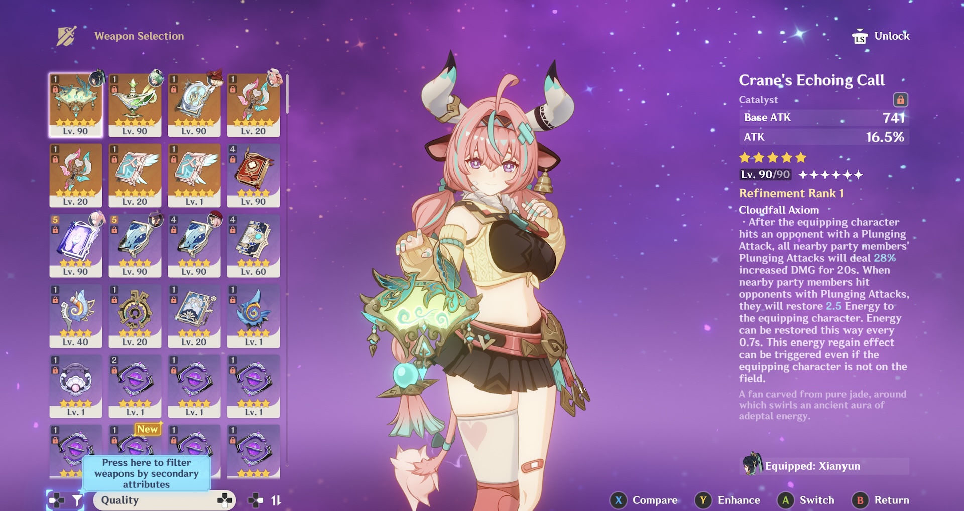 Now I really wanted to C6 Iansan and since I had a ton of wishes left ( months of saving , plus so much of map was unexplored and my finace gifted me Welken Moon for Christmas and Valentine’s) I was ready to go all out on the Varesa banner . I decided I would C6 her and use her as a main since I had most of her teammates (Xianyun , Xilonen, Furina , Chevereus , Iansan). So let’s go !