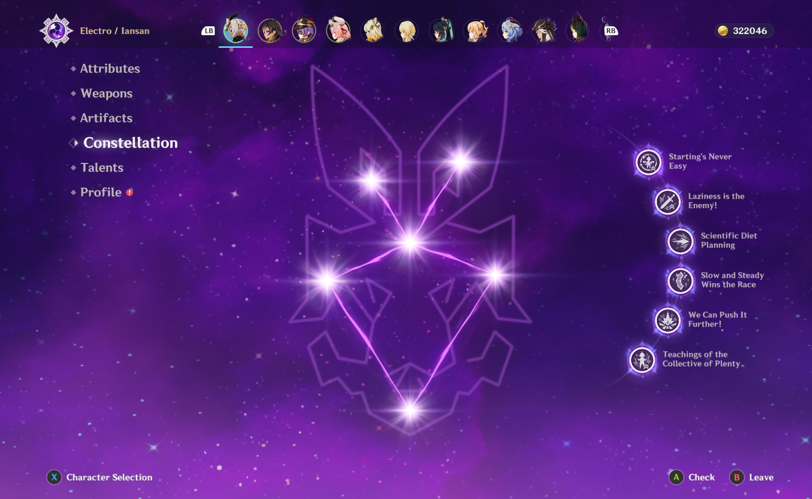This is Iansan’s constellation the represent how many times you get this character and basically the more you get the character the more attack or buff that character increases. or sometimes a skill will just last longer too. It took me a while to even get one Iansan copy , as she seemed to be the more rare character on the banner . Also I thought it was cute that her constellation was a dinosaur .