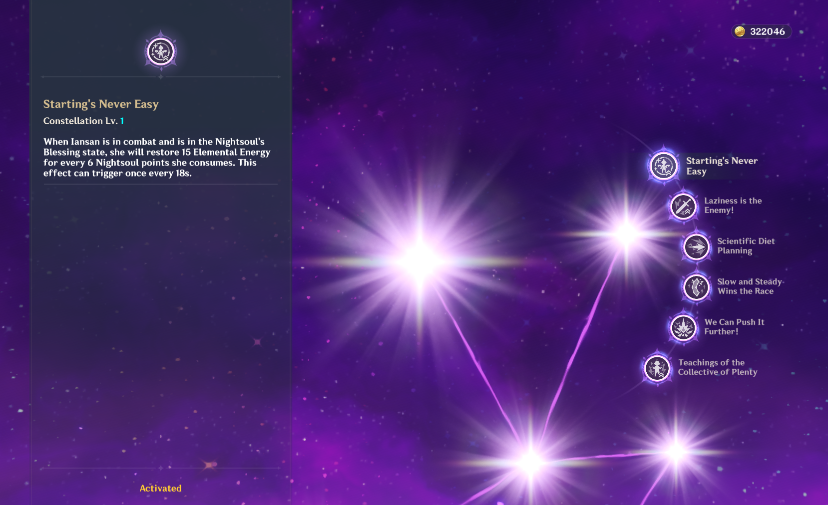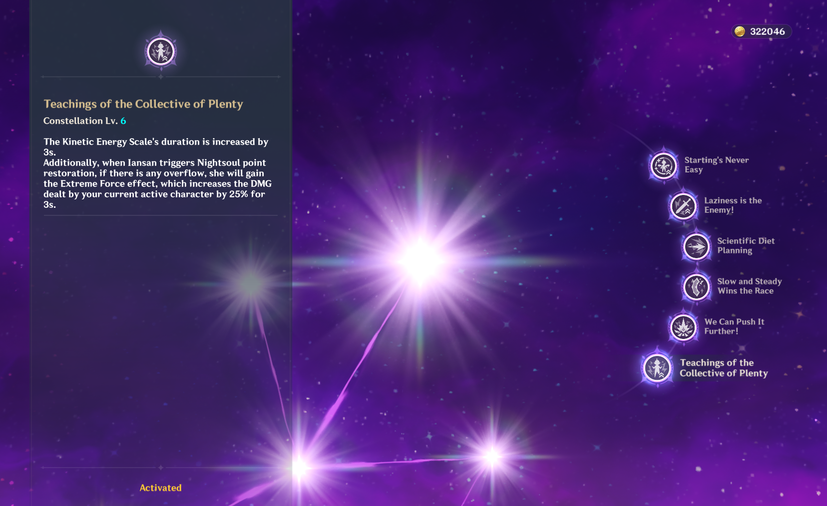 This is what her first constellation does , it’s really helpful for Varesa since she’ll extra nightsoul points to work with . Also Nightsoul stuff is so wierd of a mechanic and I honestly only had one Natlan character before . So all this is kind of new for me too.