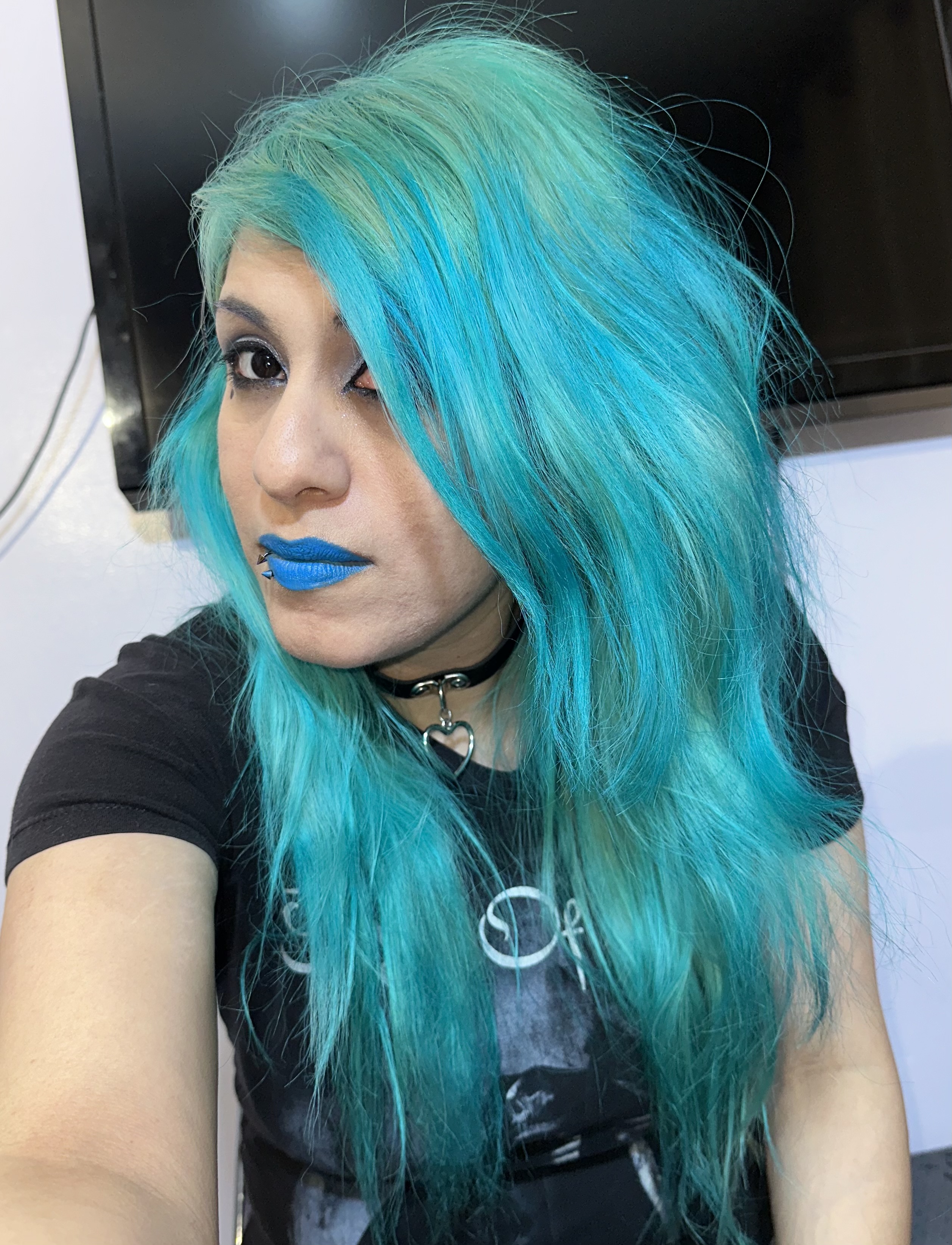 And look at that blue ! it’s so bright , and I guess similar to one of the OG Lime Crime shades ( Cry Baby). I never had any of the original lipsticks , but it was cool to think this might be a dupe for one of the older colors.