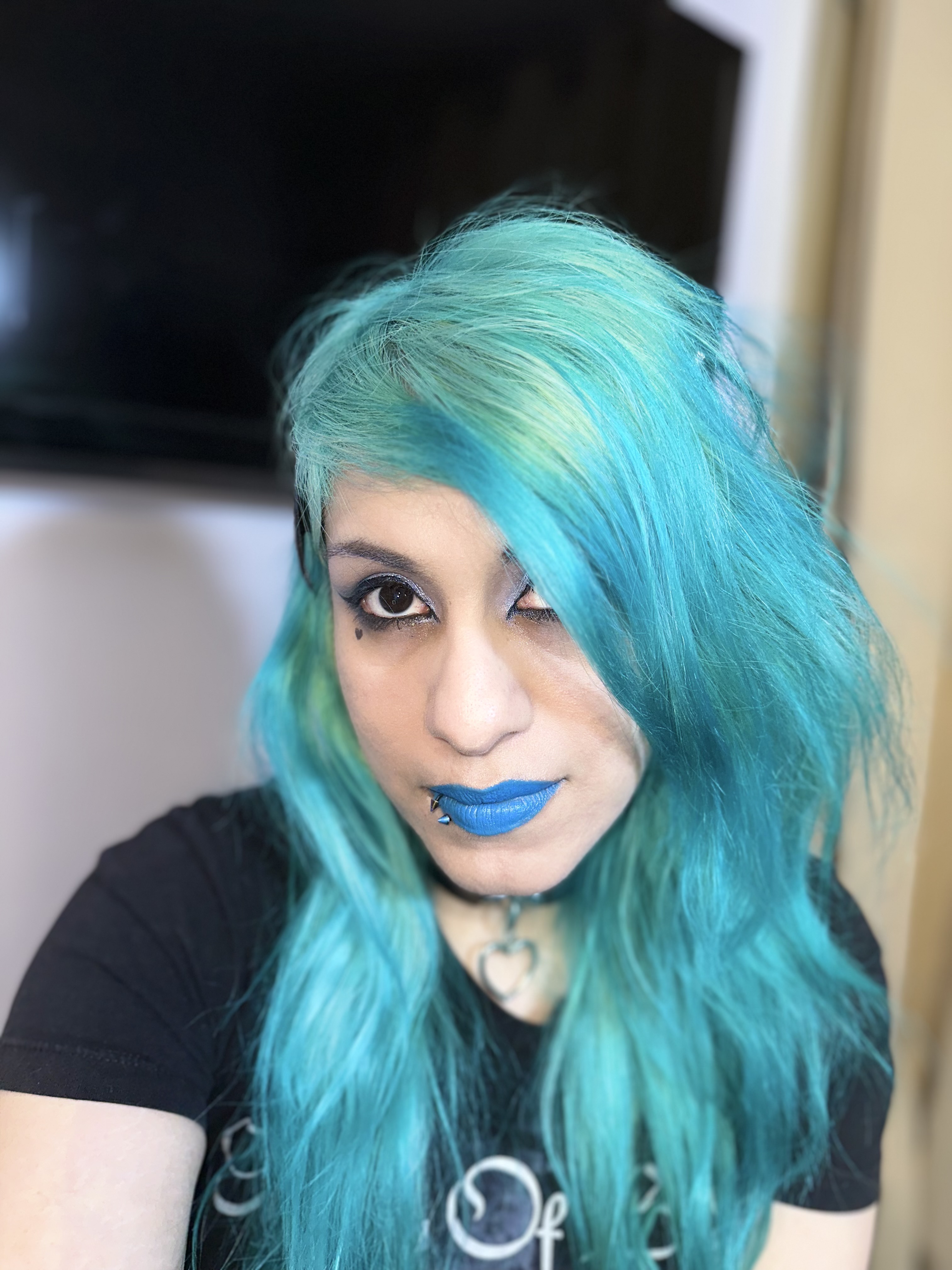 And look at that blue ! it’s so bright , and I guess similar to one of the OG Lime Crime shades ( Cry Baby). I never had any of the original lipsticks , but it was cool to think this might be a dupe for one of the older colors.