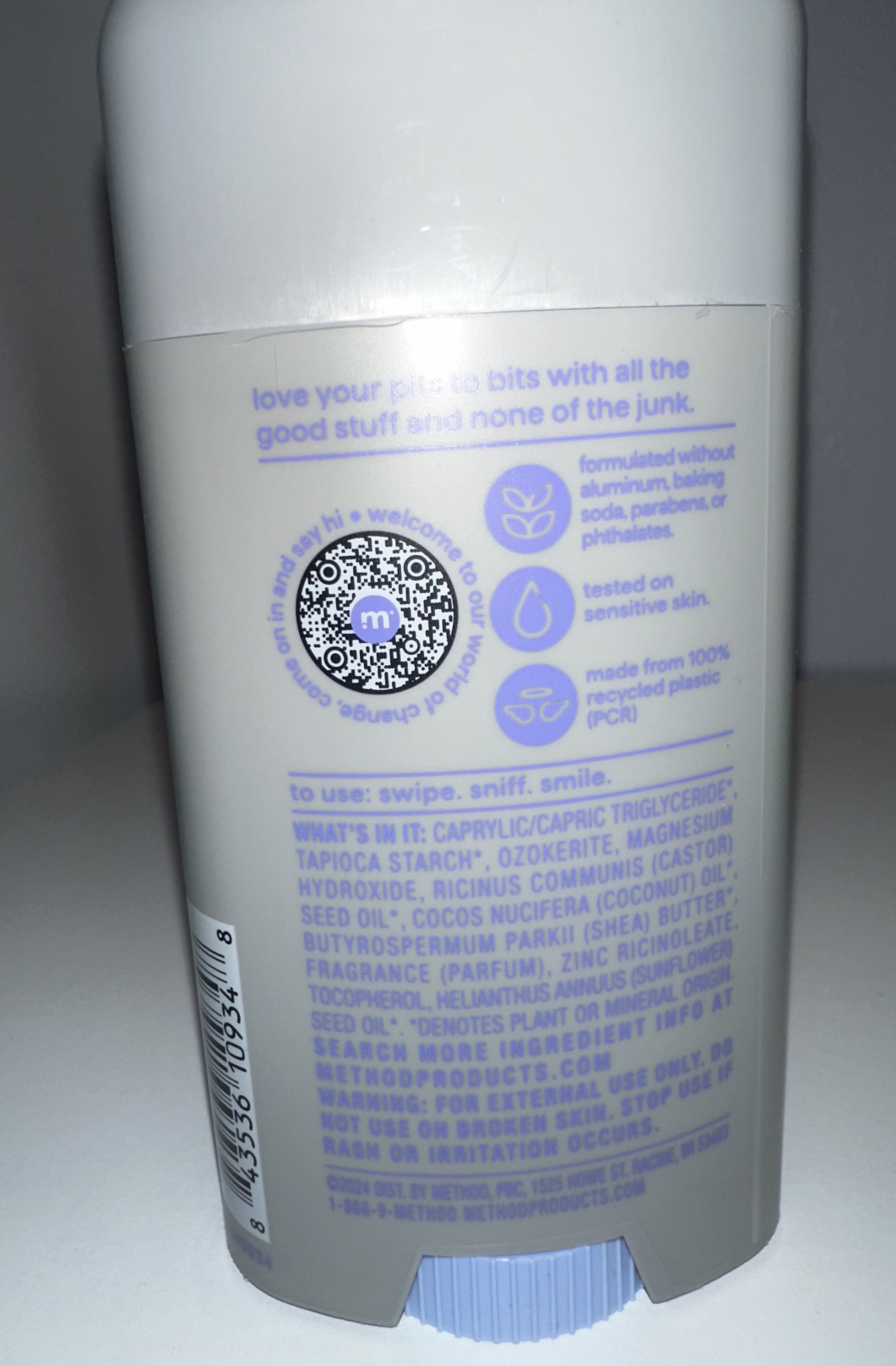 Here’s all the ingredients , it’s very close to the Hello deodorant I reviewed last time. i do think this one spreads on skin easier though and lasts a bit longer. There was a Men’s one too and I believe you can find other fragrances like the Pure Peace , which is supposed to smell like the  pure peace shampoo and condtioner and Daily Zen, which also smells like cucumber and green tea. I really like the Daily Zen shampoo so i may have to try it next.