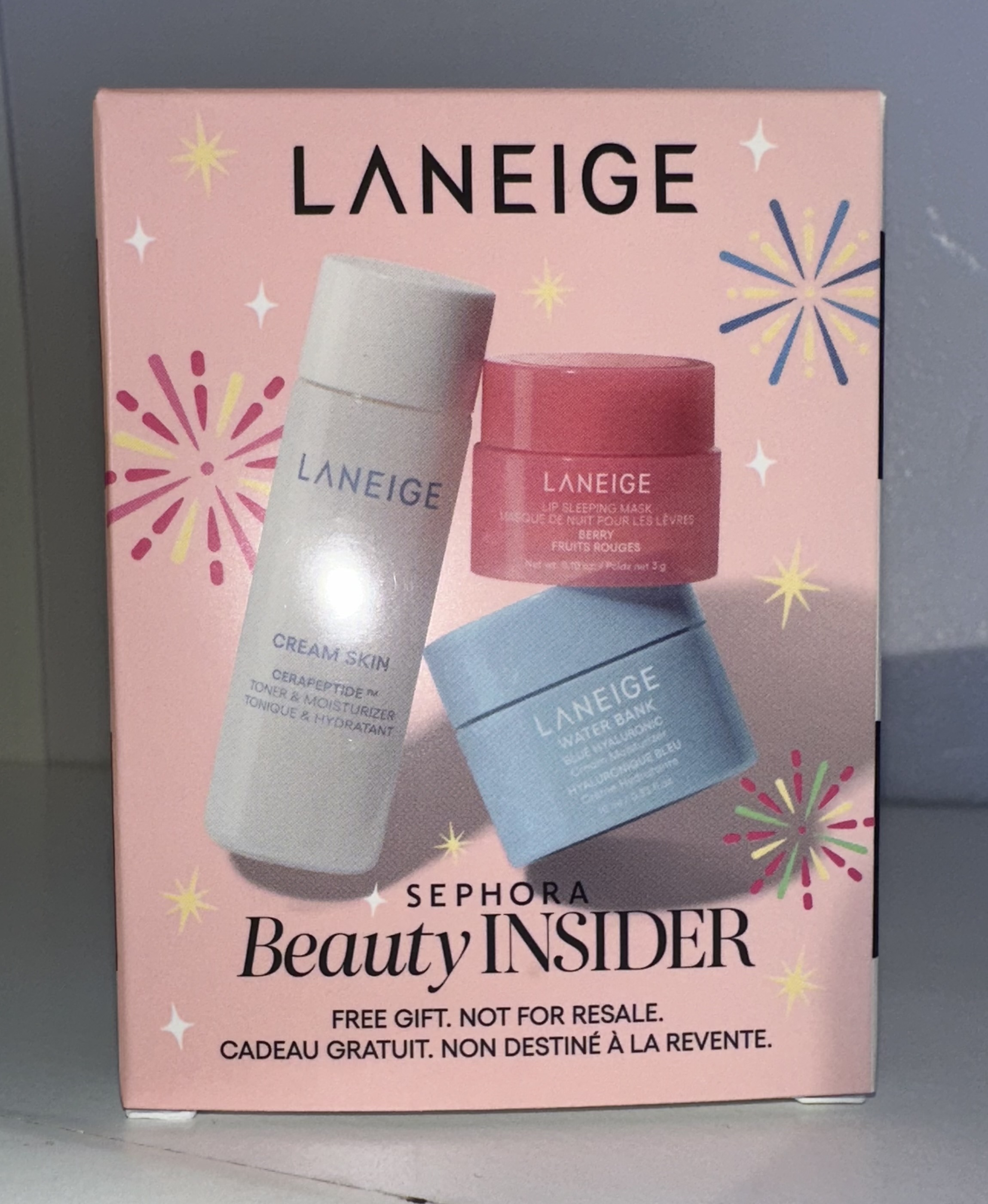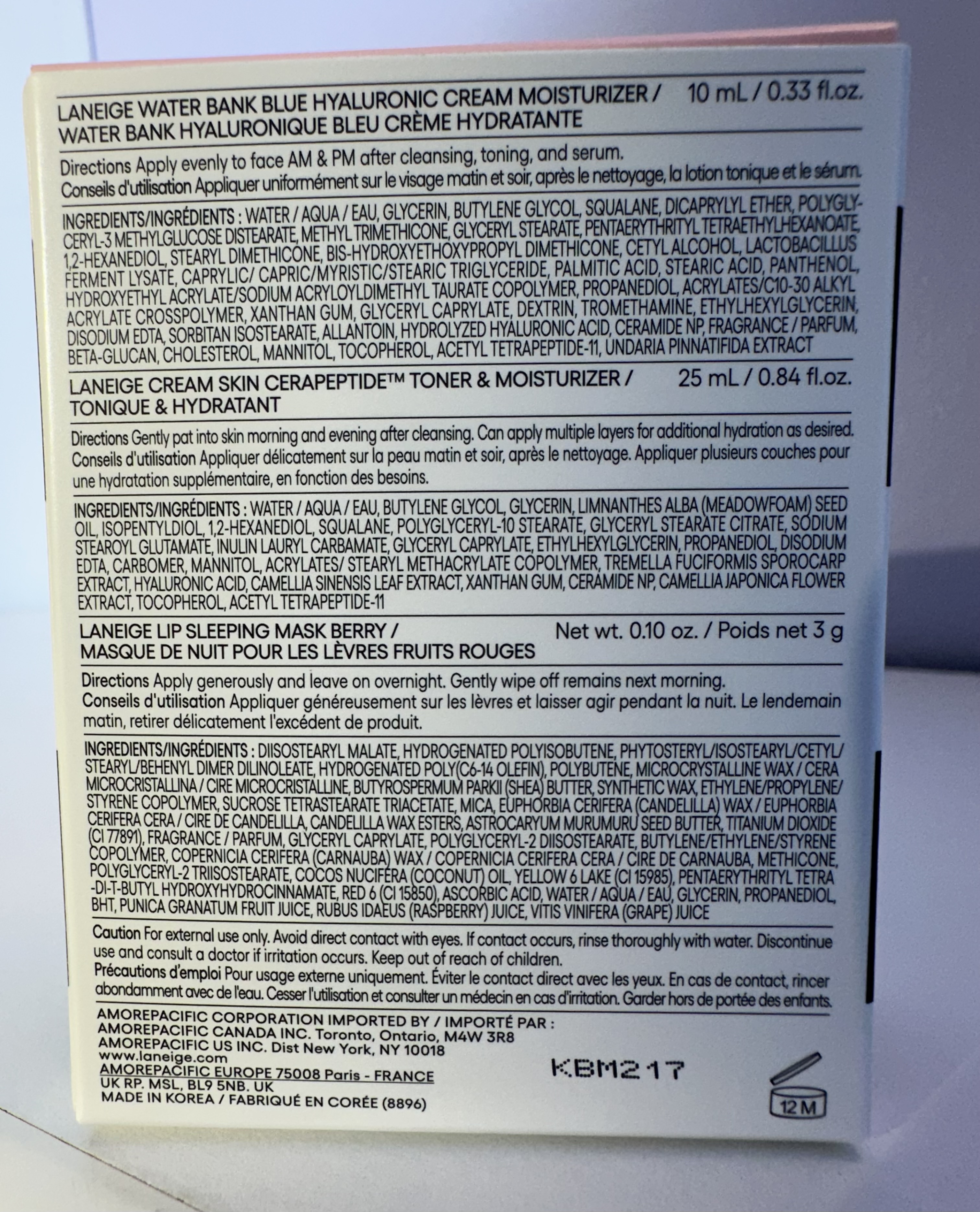 Hello everyone ! It’s that time a year again ! New Sephora Birthday gifts! And they had a really nice selection this year , Makeup by Mario lip kit, Summer Fridays set, Amika hair kit, Skinfix skin care set, Juliette has a Gun, Keratase hair set , K18 Biomimetic hair set , and finally this Laneige set . I actually picked a similar Leneige Sephora Birthday skin care set a years ago as well . This one Is slighlty similar except with a different Water Bank Cream and a nice milky toner . And one that actually works for me too! Of course Laneige’s iconic lip sleeping mask is here in the berry scent.