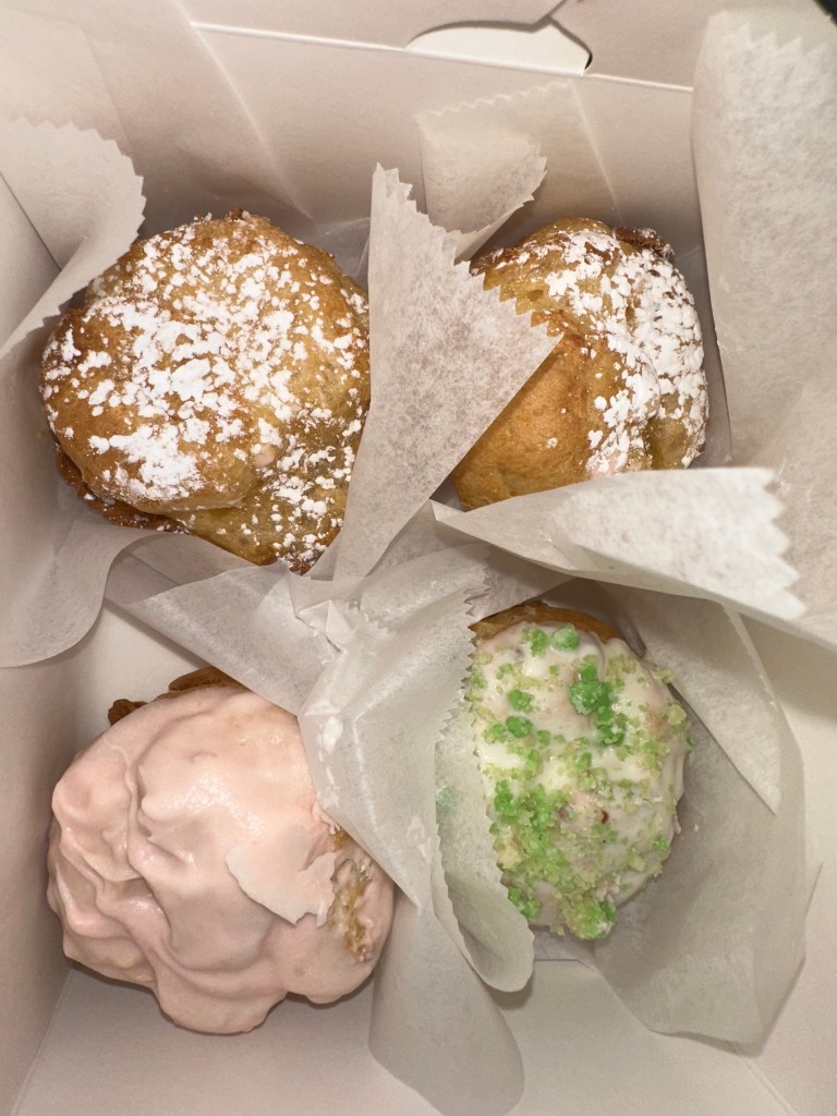 So I honestly was so happy to get stands that I didn’t notice that my cream puffs weren’t as green or red as the pictures , but talking to others online in discord , I got the wrong puffs lol. I think they ran out of the Royal raspberry that was meant to be Burnice’s signature puff , and had very little of the Key Lime Crumble for Anby’s . I instead got strawberry though, and while it was petty good ( had a white chocolate , hint of strawberry taste) I really want to try the Royal Raspberry now. The keylime crumble was more of hint of keylime and I think it would’ve been better with more keylime taste. But that’s my option as a Key Lime pie fan. The other puffs are your standard puff shell with the vanilla custard ( with real vanilla bean, I could see the specks) and a tiny bit of powdered sugar on top. I do think some of the puffs could’ve been better with a different filling , vanilla is nice but what would an actual keylime custard have been like ? Also for those curious you can get other flavors like matcha , Oreo , honey butter , churro , Ube , and chocolate and matcha fillings as well. If I do go back I may try one of those next.