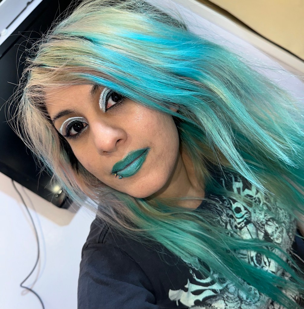 I really like this color ,although I wish it had been this vibrancy longer . But I do understand the appeal of Lunar Tides for those that want to swap their hair color frequently, they fade nice without really leaving traces or stains. But for someone like me or even those that want a longer lasting color that’s kind of detrimental. I’ll eventually get to writing my Magnum Opus on the pros and cons of each brand of rainbow hair dye. It’s coming ! Eventually , but in the mean time I’ll be trying to decide if I want to go back to Cyan Sky , Iroiro Emerald Green , or try out some other colors like Seawitch , Lime Crime’s Anime , or even Lunar Tide’s darker Cerulean Sea. I have three dyes in my cart so we’ll have to see which one is next. Have a great week everyone !