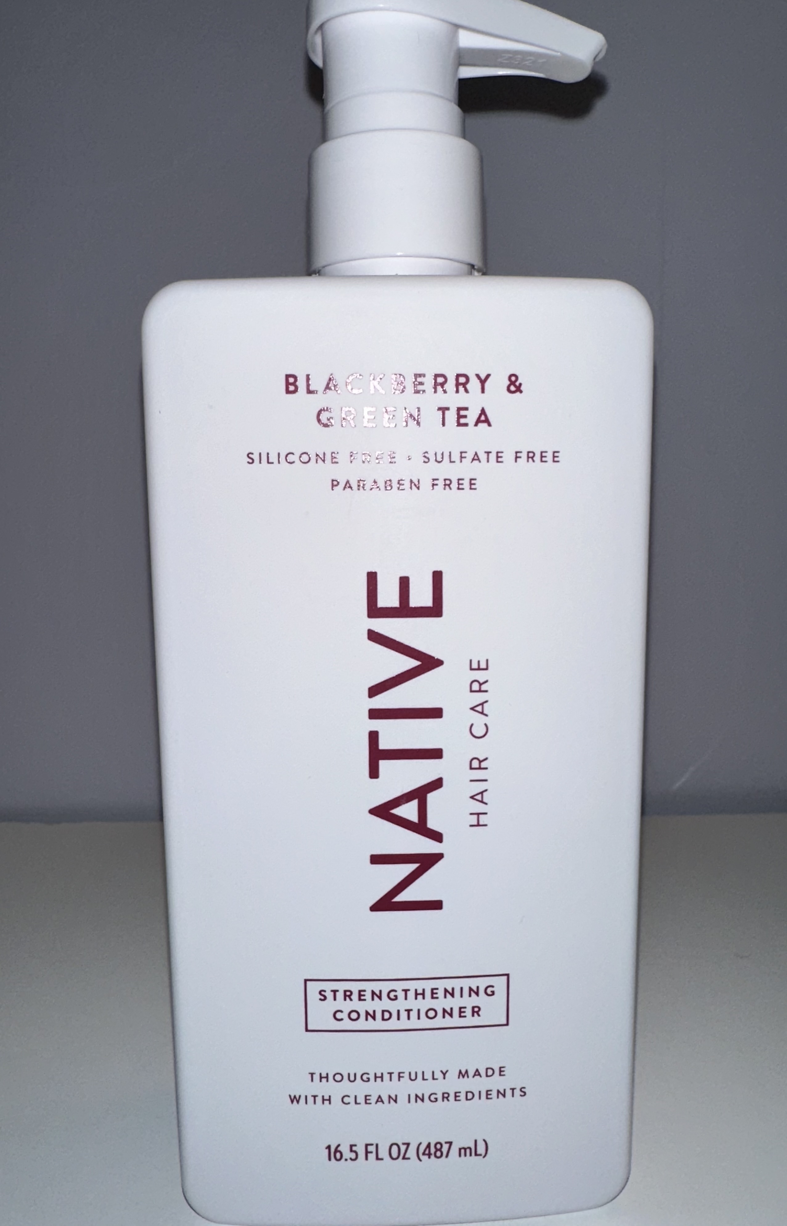 Hey everyone ! It’s finally time to wrap up some of my shampoo and conditioner reviews , and this latest set was sent out by Native. I’ve been curious about Native products and was happy to try out the blackberry and green tea strengthening set. The list of ingredients for these is very minimal and the packaging is really nice.