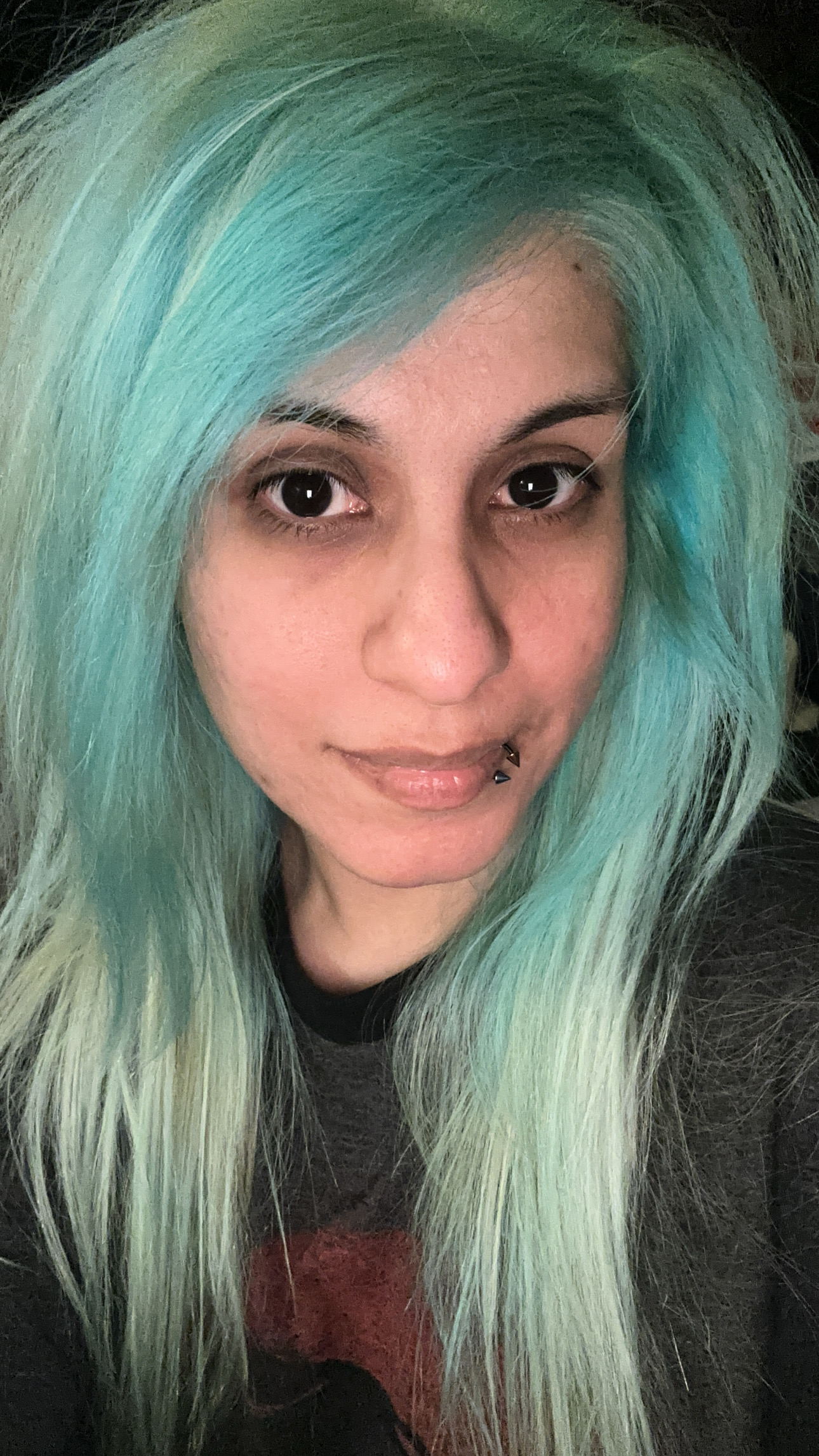 Not the best pic but one of the few no makeup ones . This was right after I bleached my hair and toned with blue. I feel like using it for weeks really helped my skin and it really didn’t aggrivate my acne . I did get some hormonal acne later that month but I don’t believe it was caused by the serum in anyway.
