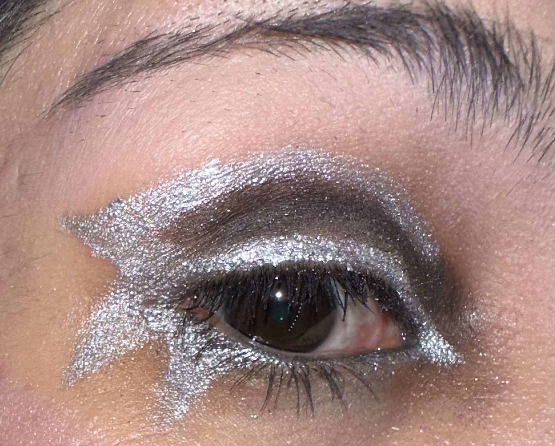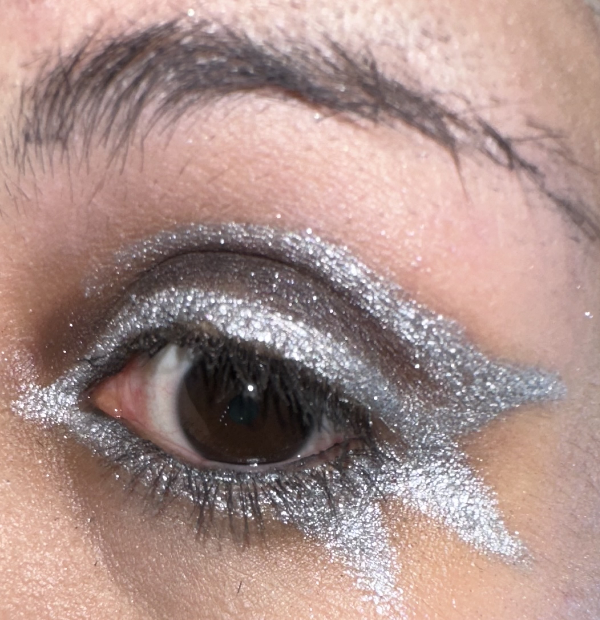For today’s look , I wanted to try and do a graphic sort of batwing look , it came out looking more glam rock . I also I decided to add some black shadow as a base since it made the silver really pop.