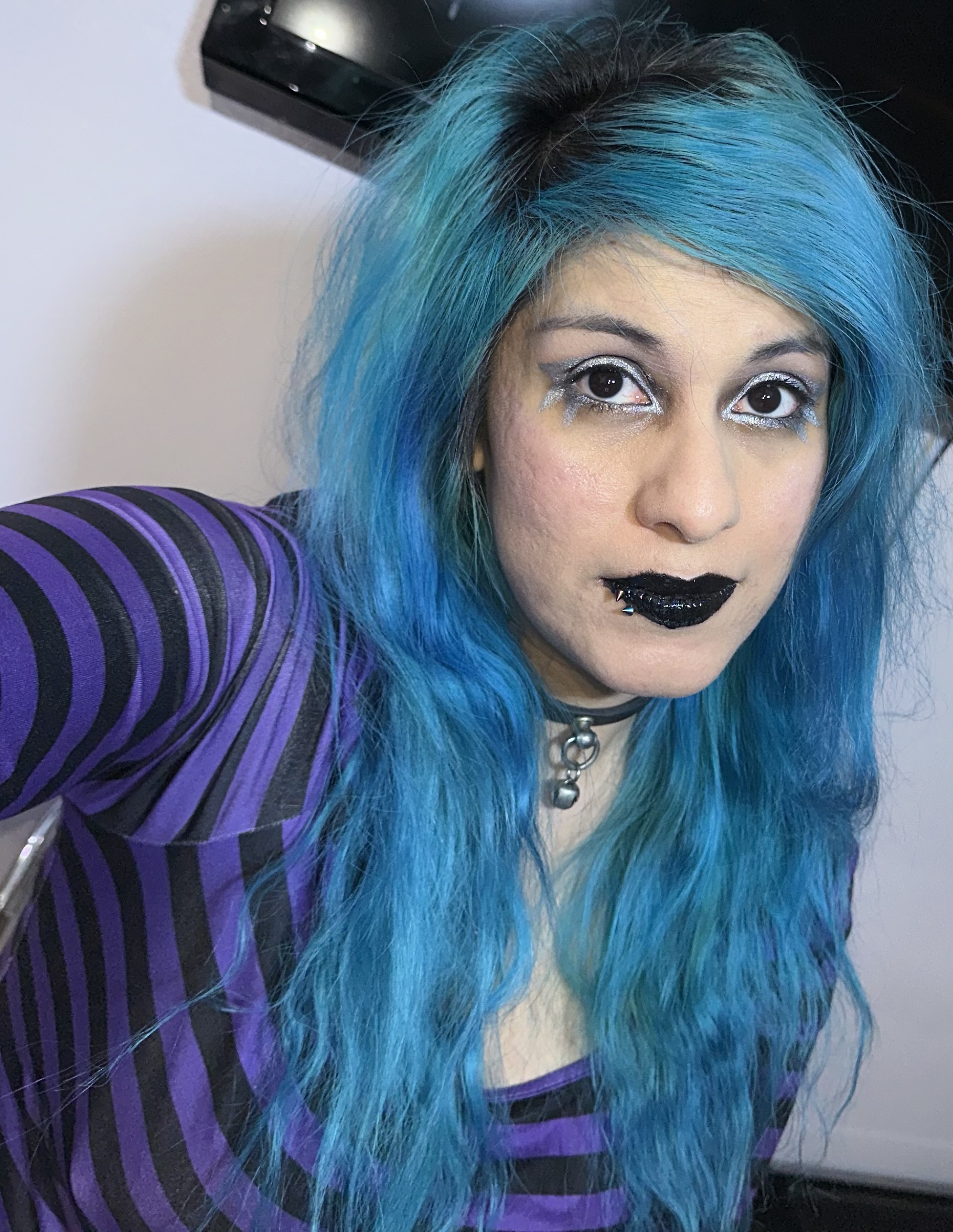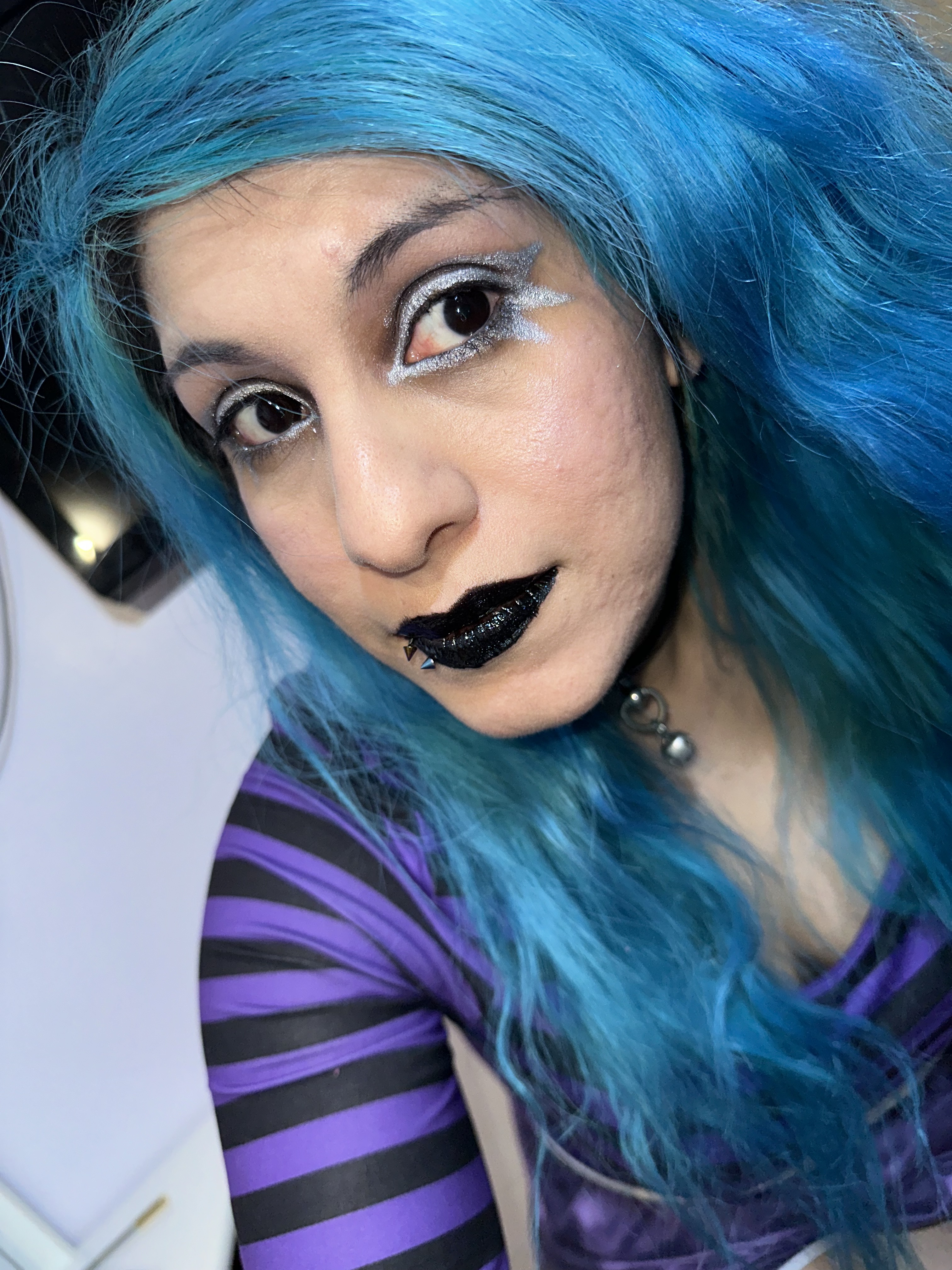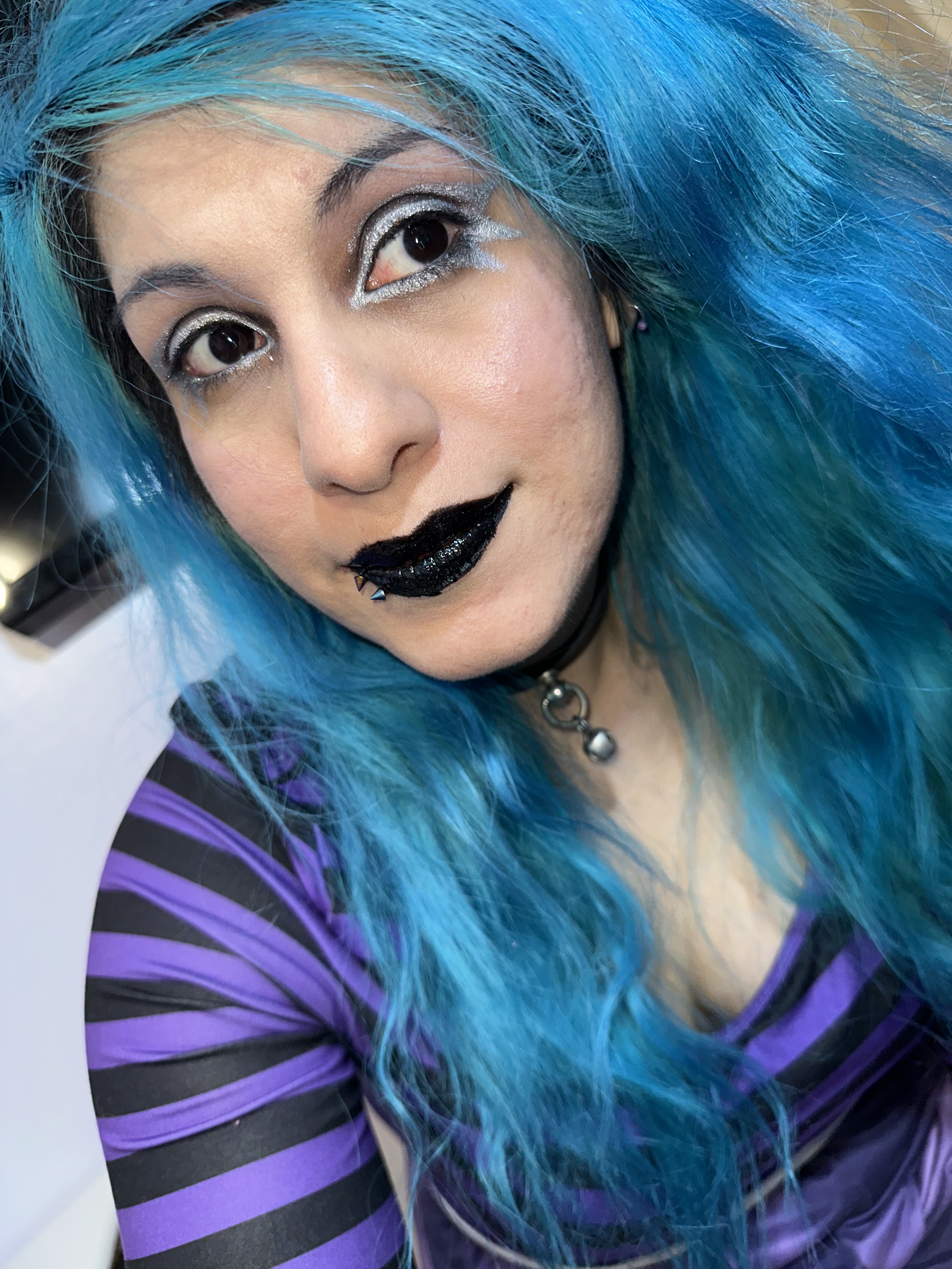 And I decided to go for a goth glam look with sparkly black lips too ! I applied girlcult miao witchcraft love and then Fenty Kaboom on top .