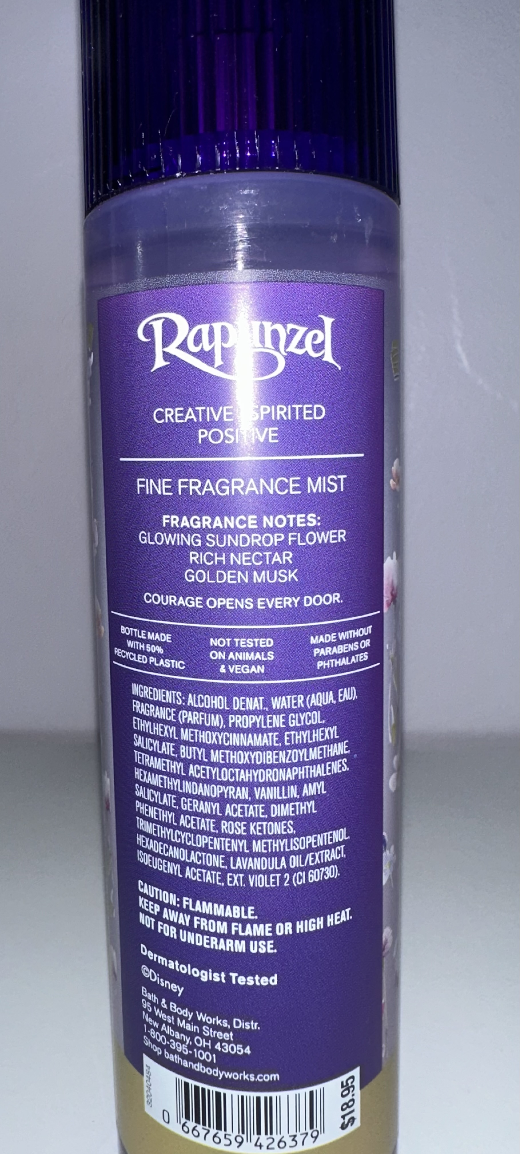 Hey , I’m back and with more fragrance! This time it’s the Bath and Body Works Rapunzle fine mist spray. This was part of Bath and Body Works newest Disney Princess collection , the first wave I odn’t believe had Rapunzle but this one did along with Mulan , Cinderella and Snow White . And I think Princess Aurora too . I chose Rapunzle since it supposedly had nectar notes. But sadly when I recieved it , I was going through a horrible flu week. It was the worst timne to try and see what a fragrance smelled like and I initially had to forget about reviewing it for a while, since I lost my sense of smell and was severely stuff. Terrible timing lol. But now that I’ve had it for sometime I can now accurately describe the scents , or so I thought.